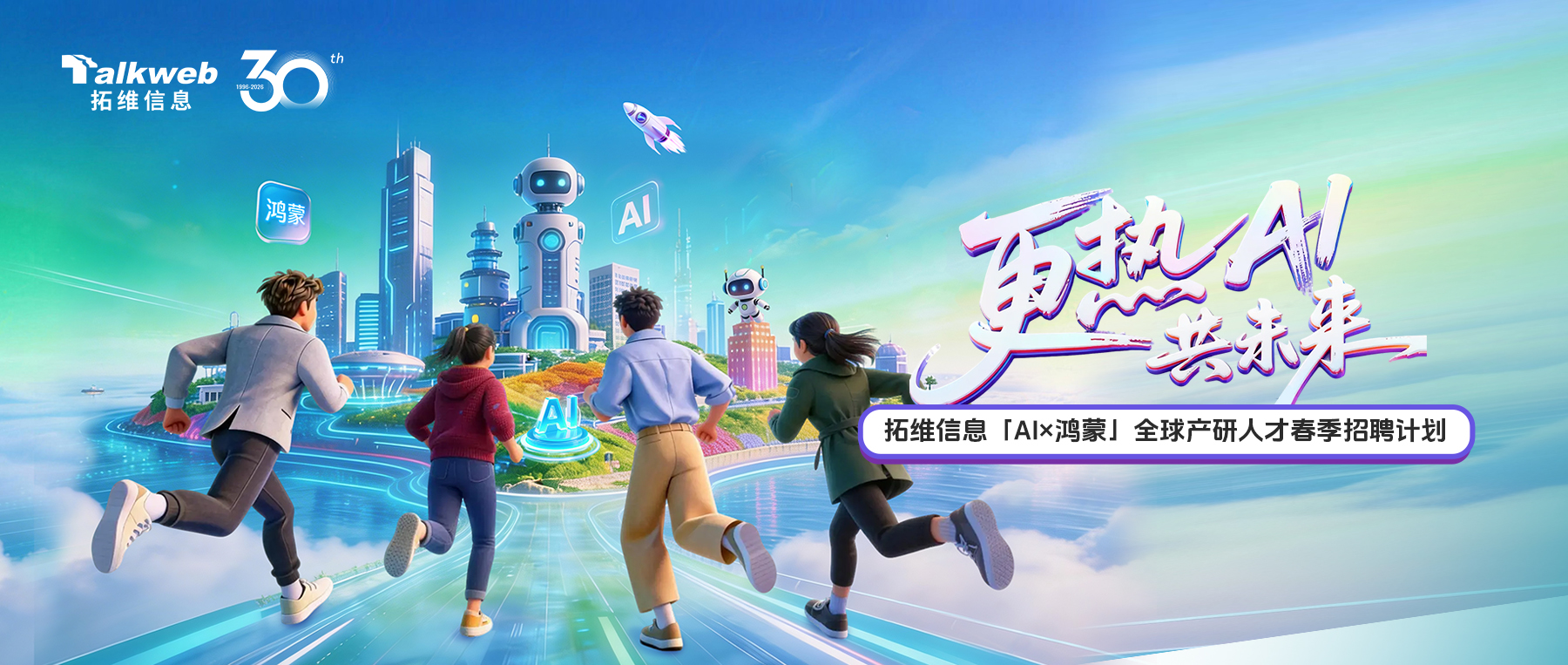 日前,拓维信息已正式启动“2026年「AI×鸿蒙」全球产研人才春季招聘计划”,面向全球开放包括AI算法、AI Agent、芯片适配、数据工程师等多个前沿技术、产品岗位,诚邀怀揣技术理想、渴望挑战未知的优秀青年人才加入,共同投身于“AI×鸿蒙”的广阔未来!